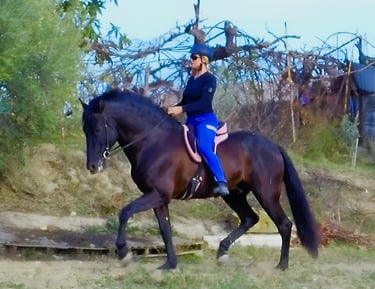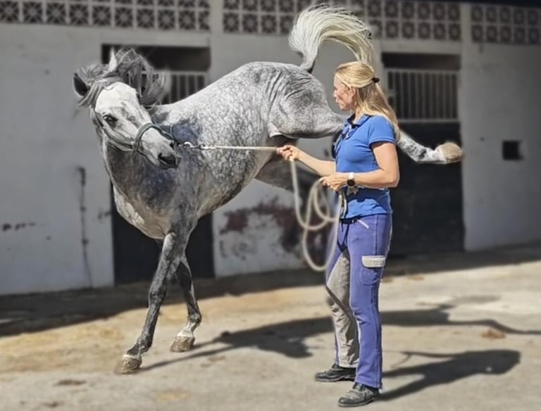 Siempre he tomado clases de equitación tradicional, haciendo lo que me decían sin cuestionarlo. A través de ti, no solo he aprendido a pensar por mí misma, sino que también hemos podido detectar graves problemas dentales en mi caballo. Además, me di cuenta de que no es normal que un jinete lleve 55 kg de peso en las manos. Mi caballo, que antes se ponía nervioso al verme, ahora está completamente tranquilo. Solo puedo agradecerte mil veces por todo lo que has hecho por nosotros.